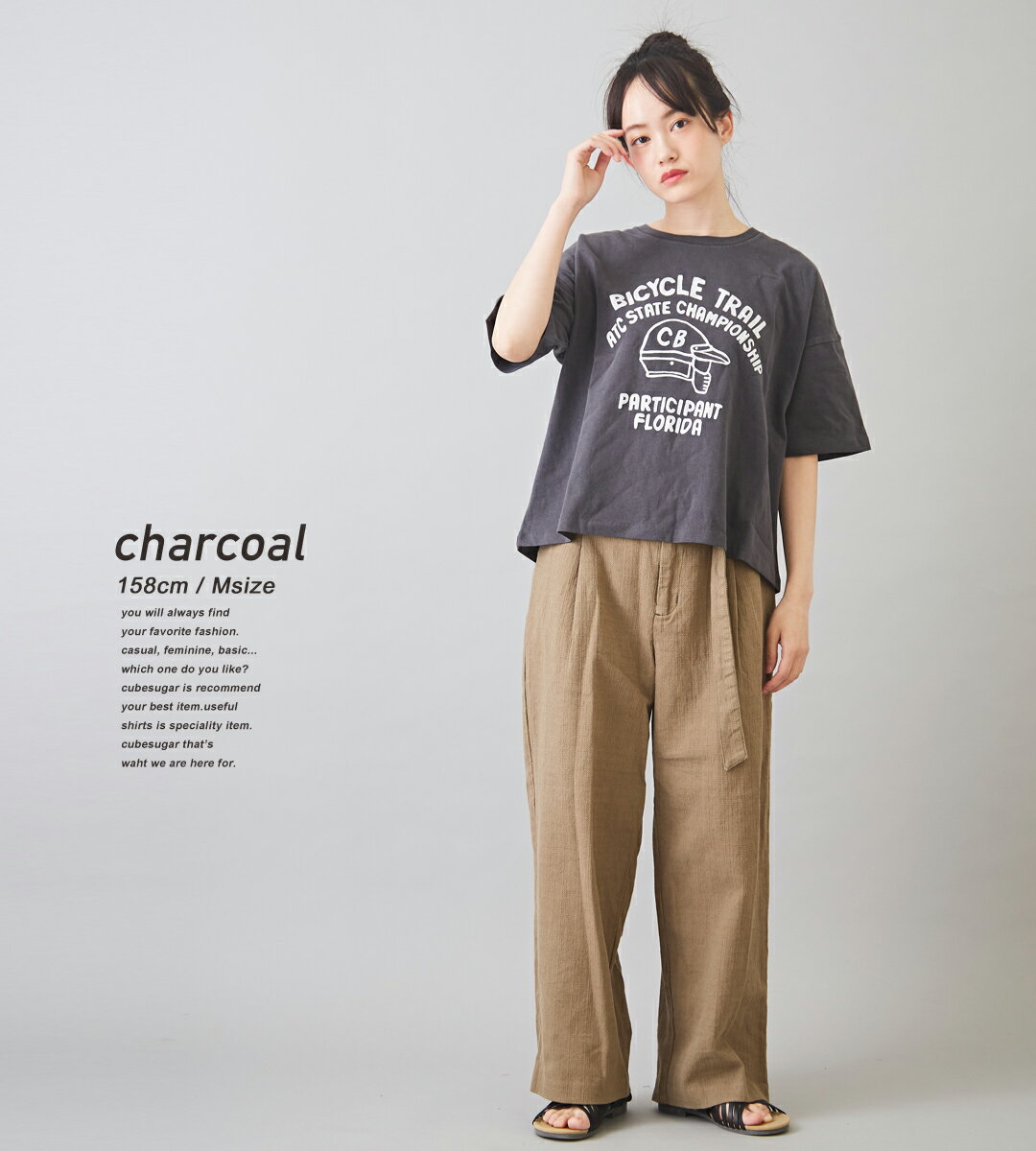 【クーポン対象】楽天スーパーSALE【20%OFF】ロゴTシャツ / 春新作 / CUBE SUGAR 天竺 空紡糸 ピグメント染め ボックス Tシャツ(4色): レディース トップス ビッグTシャツ ワイド バックプリント クルーネック 丸首 半袖 ロゴプリント コットン キューブシュガー