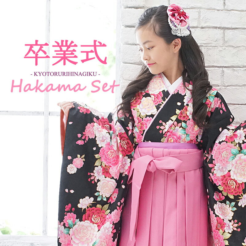セール 袴 小学生 卒業式 小学校 袴セット ジュニア はかま セット ジュニア 薔薇(ばら) 小学校の卒業式 きもの 着物 女の子 4点セット 140 150 160